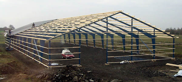 | Här kan du se bilder när nya ridhuset byggdes upp från en bit hage till ett ljust praktridhus. Börja från början/längst ner på sidan. |