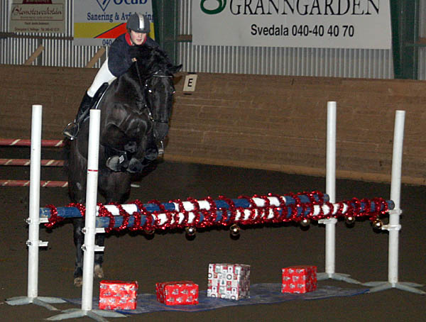 | Ungdomssektionen ordnade en fantastisk Lucia-show med dressyr, hopptävling, spex, lotterier, jultomte med godispresenter och naturligtvis ett Lucia-tåg. Det var trångt på läktarna på grund av en stor publik som lät sig väl smaka av glögg, lussekatter och applåderade entusiastiskt - till vissa hästars förskräckelse. | |||