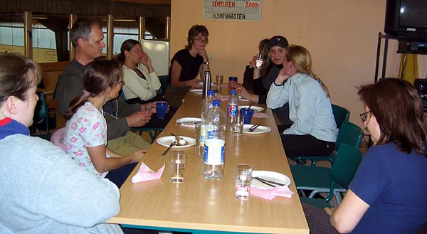 Runt bordet: Pia, Eva, Thomas, Camilla, Eva, Solveig, Petra, Ingela och Carina