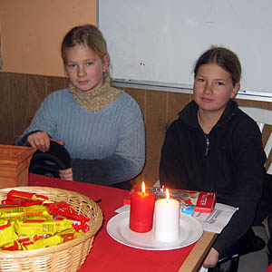 | Välkommen! | Godissäljare: Paulina och Charlotte |
