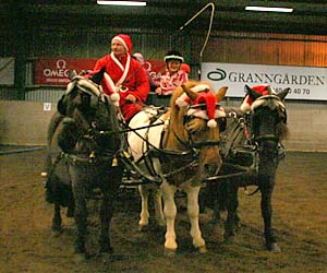 | Sune kör "barnvagn" under pausen med sina | 3 söta, tomteluvade, små shettishingstar |