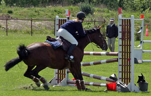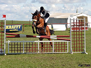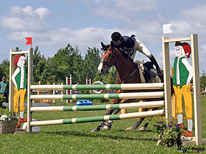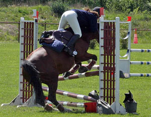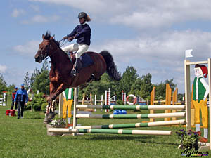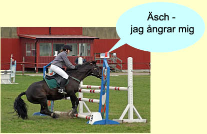 "De var så dax att hoppa nu och här är ju massa bommar ivägen" Ryttaren: "Oj, låt mig också titta" |